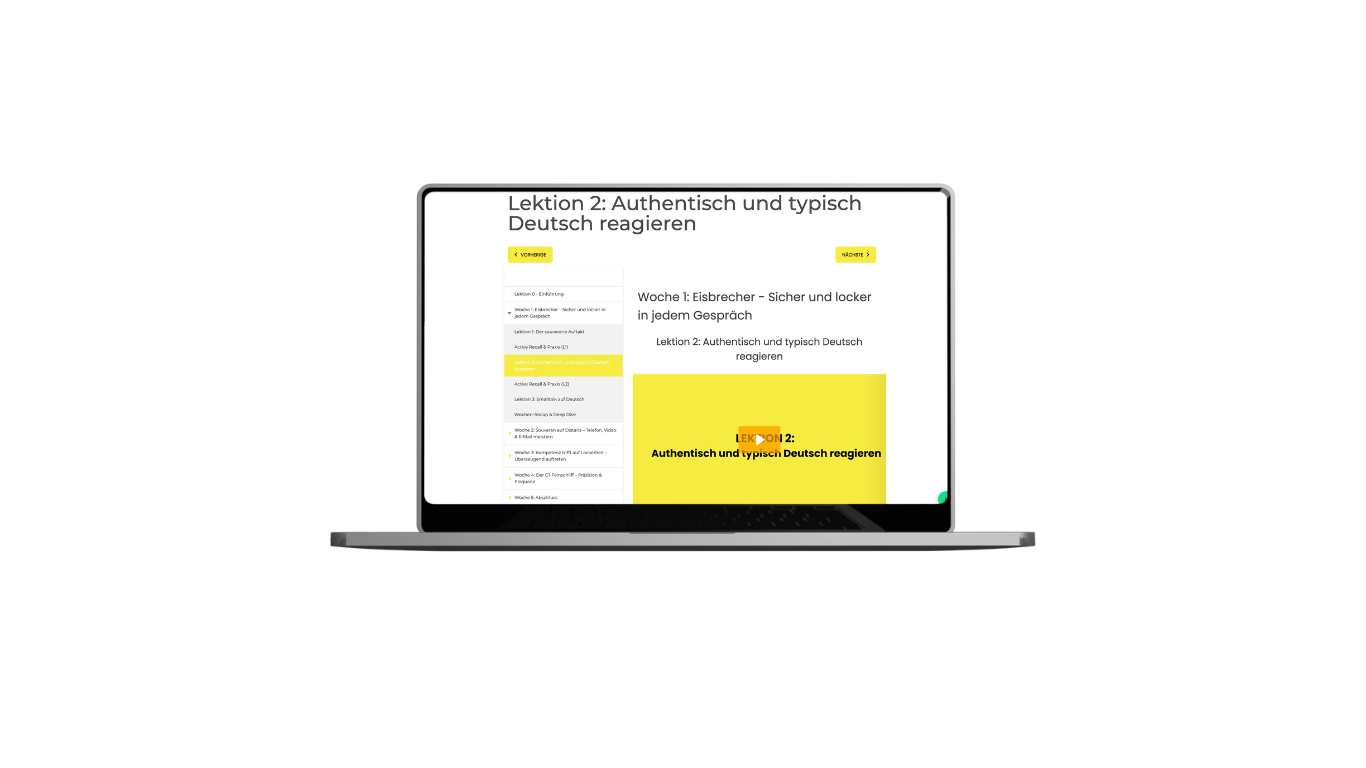 Der entscheidende Unterschied: Du lernst hier keine neuen Wörter auswendig. Du lernst, den Wortschatz, aktiv abzurufen. Die meisten Kurse bauen passives Wissen auf. Dieser Kurs überführt Wissen in aktiven Gebrauch in echten Situationen.