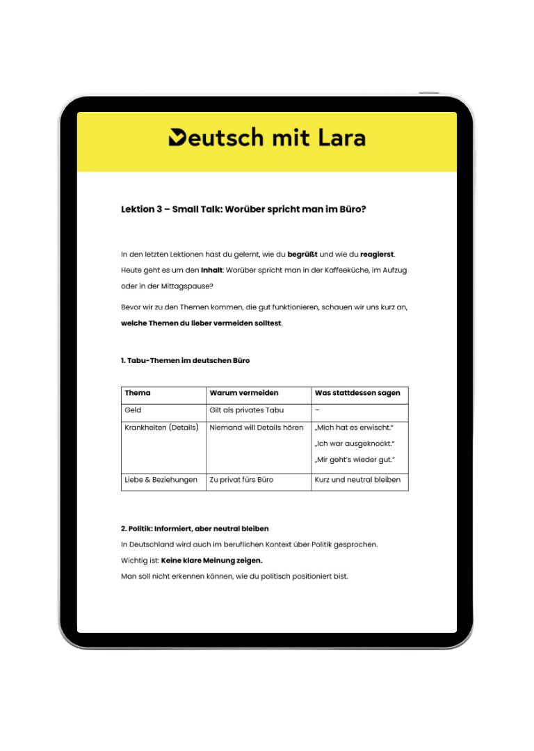 Du lernst, wie du deine Meinung klar vertrittst, diplomatisch widersprichst und professionell argumentierst. Gleichzeitig lernst du Umgangssprache für den Büroalltag – damit du nicht steif klingst, sondern locker UND kompetent.